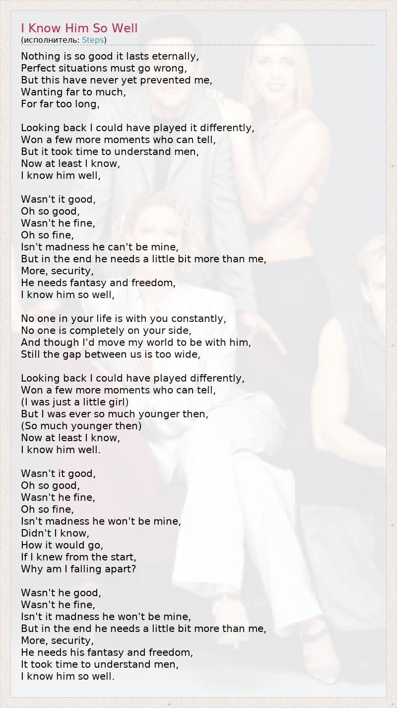 А как ты думаешь, о чем песня "I Know Him So Well" ?