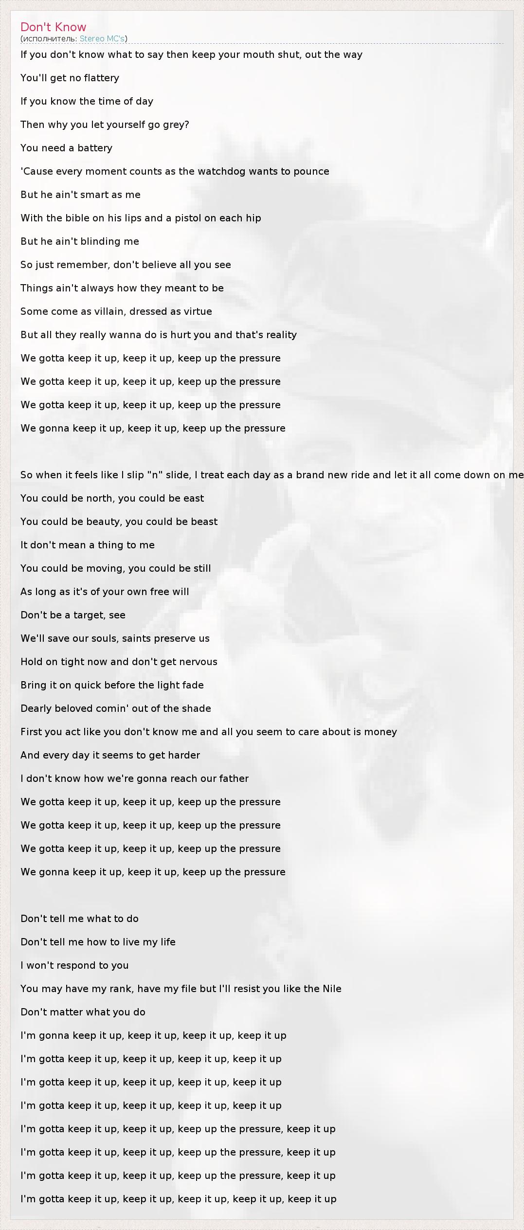 I'm gotta keep it up, keep it up, keep up the pressure, keep it up