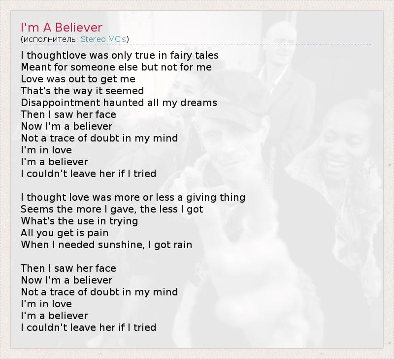 А как ты думаешь, о чем песня "I'm A Believer" ?