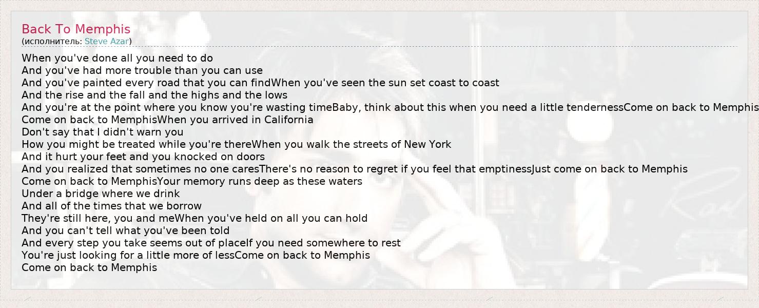 А как ты думаешь, о чем песня "Back To Memphis" ?