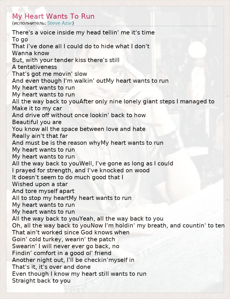 А как ты думаешь, о чем песня "My Heart Wants To Run" ?