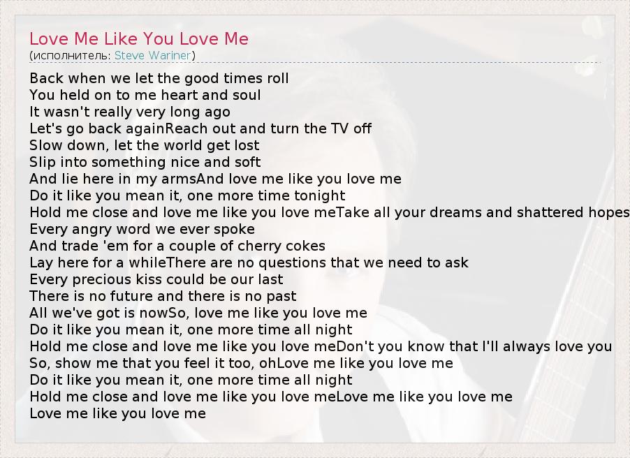 ГлавнаяИсполнителиSteve WarinerLove Me Like You Love Me