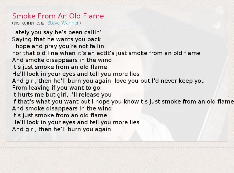 А как ты думаешь, о чем песня "Smoke From An Old Flame" ?