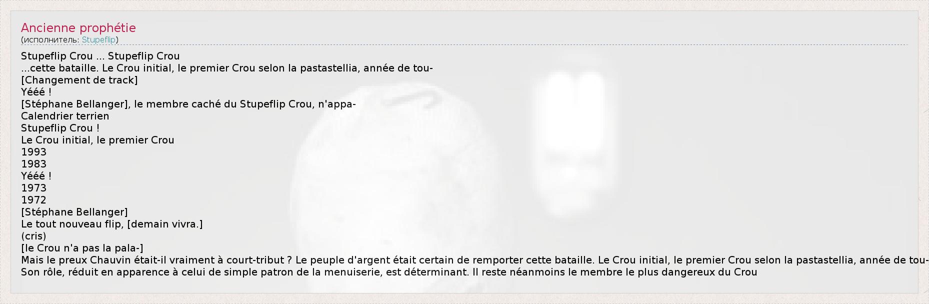 А как ты думаешь, о чем песня "Ancienne prophétie" ?