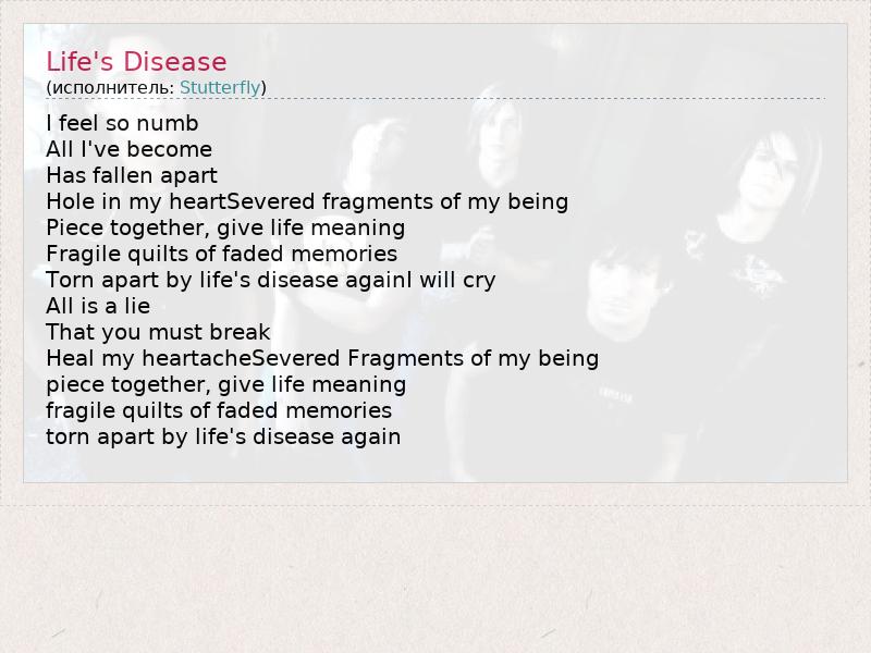 А как ты думаешь, о чем песня "Life's Disease" ?