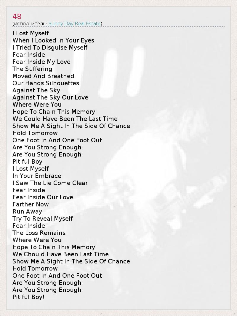 Это интересно:Sunny Day Real Estate (или SDRE) (с англ. Собственность солнечного дня) — американская альтернативная рок-группа из города Сиэттл, штат Вашингтон. Группа образовалась в 1992 году под первоначальным названием «Empty Set» и включала в себя Дэна Хэрнера (гитара, вокал), Нэйта Мэндела (бас) и Уильяма Голдсмита (барабаны).Ребята записали демо под этим названием, но тут вдруг обнаружилось,... продолжение