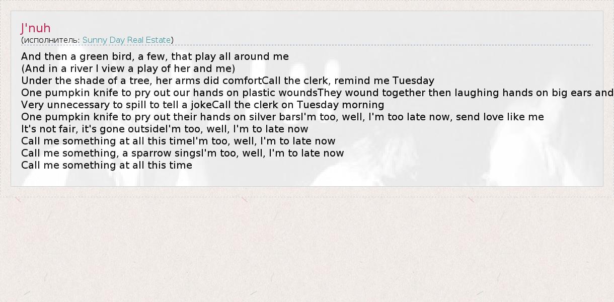 Call me something at all this timeI'm too, well, I'm to late now