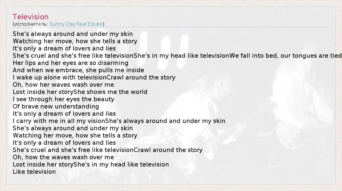 А как ты думаешь, о чем песня "Television" ?