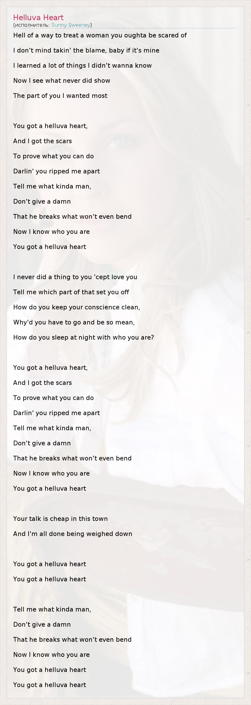 А как ты думаешь, о чем песня "Helluva Heart" ?