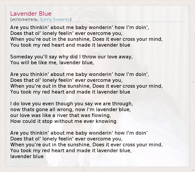 А как ты думаешь, о чем песня "Lavender Blue" ?