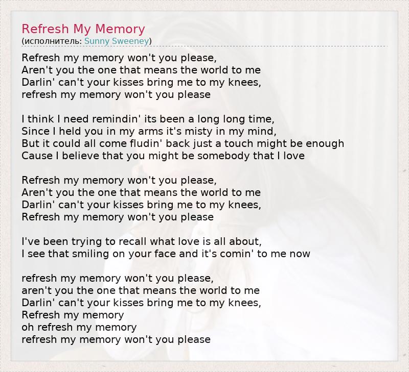 А как ты думаешь, о чем песня "Refresh My Memory" ?