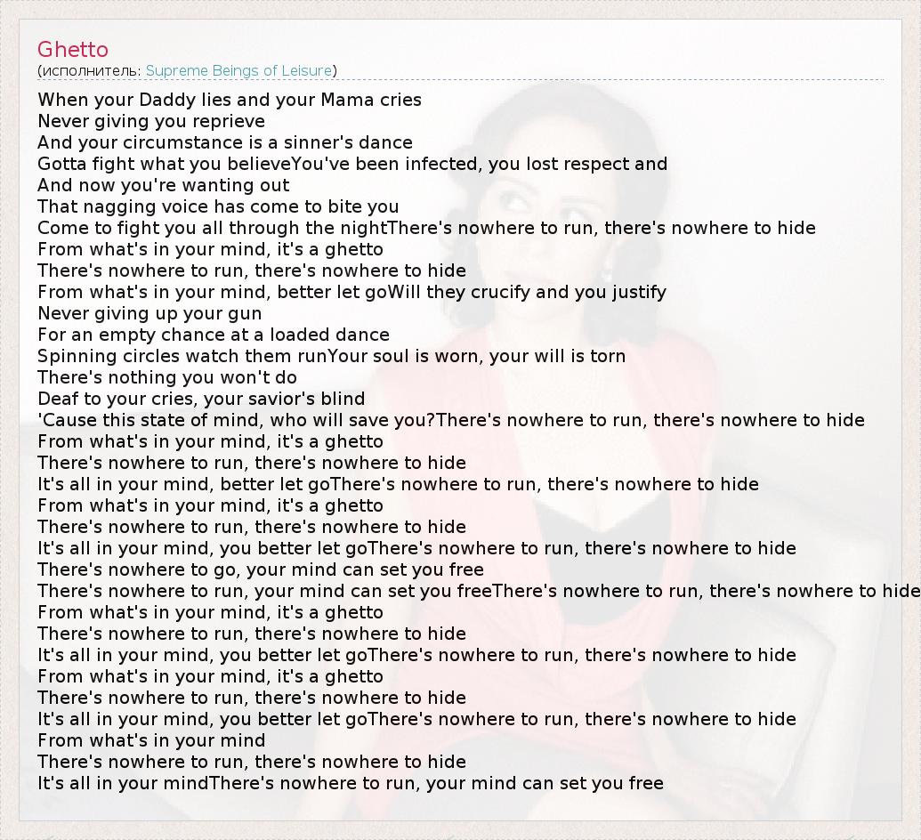 There's nowhere to run, your mind can set you freeThere's nowhere to run, there's nowhere to hide