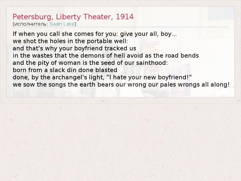 А как ты думаешь, о чем песня "Petersburg, Liberty Theater, 1914" ?