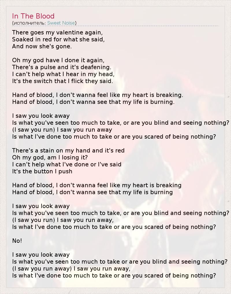 Hand of blood, I don't wanna feel like my heart is breaking.