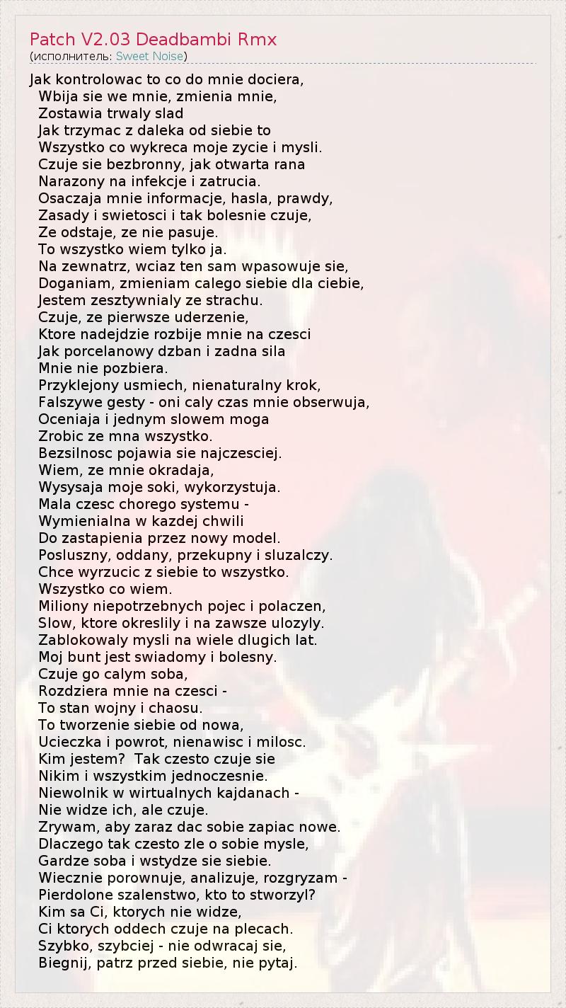 А как ты думаешь, о чем песня "Patch V2.03 Deadbambi Rmx" ?