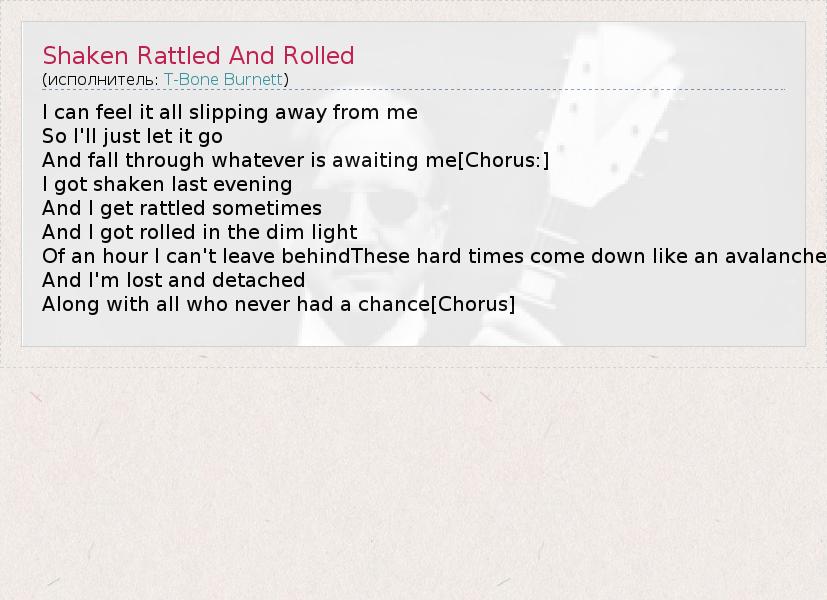 А как ты думаешь, о чем песня "Shaken Rattled And Rolled" ?