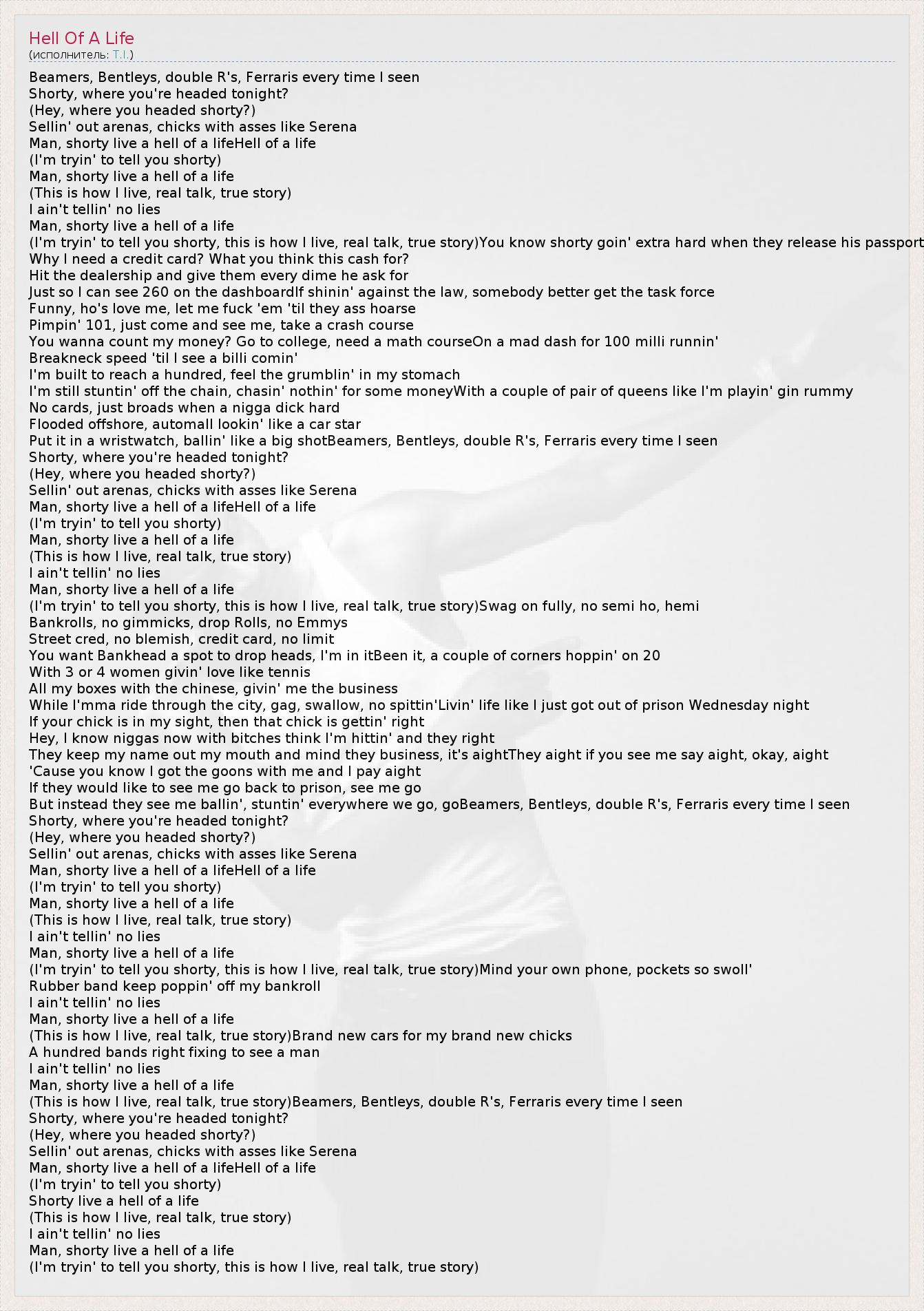 А как ты думаешь, о чем песня "Hell Of A Life" ?