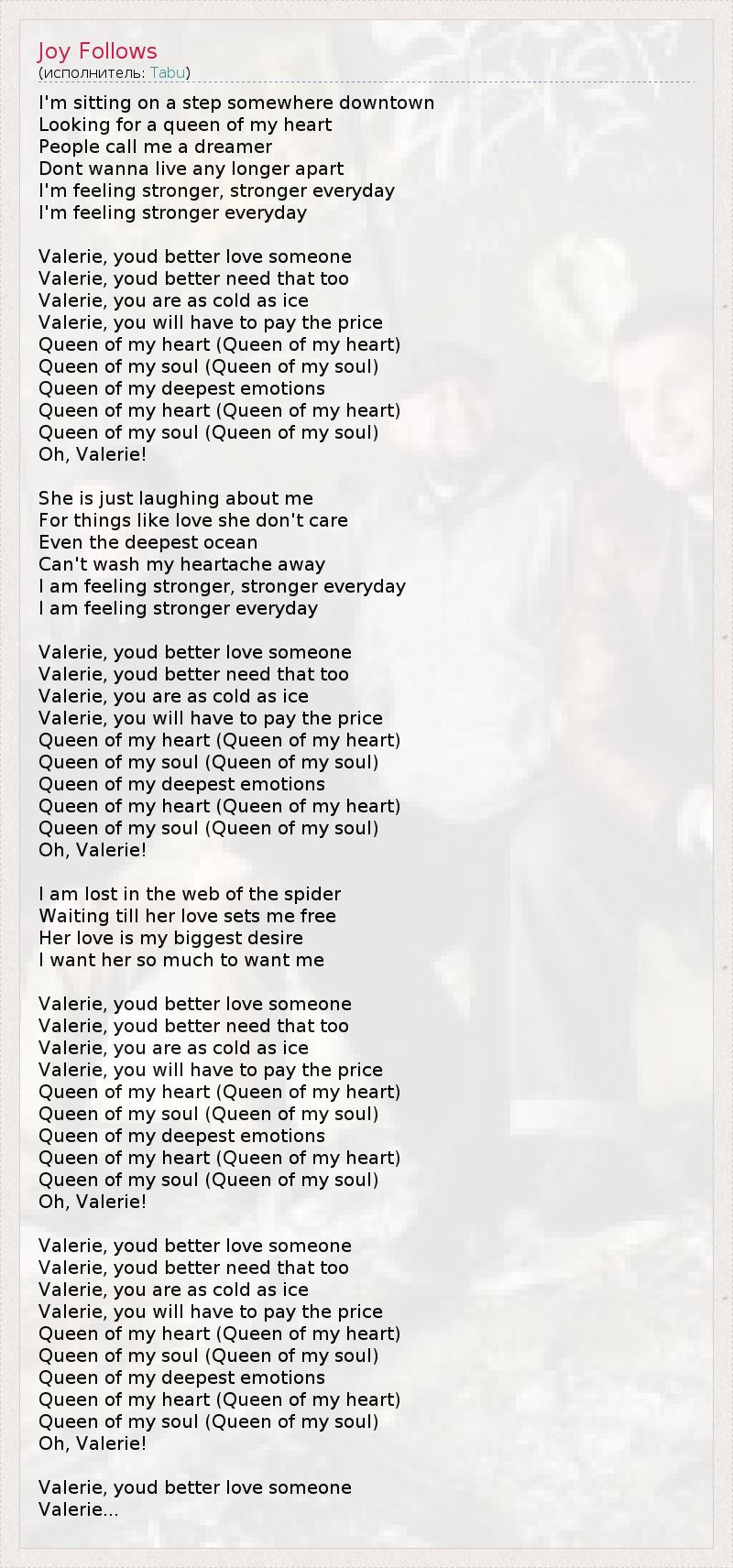 А как ты думаешь, о чем песня "Joy Follows" ?