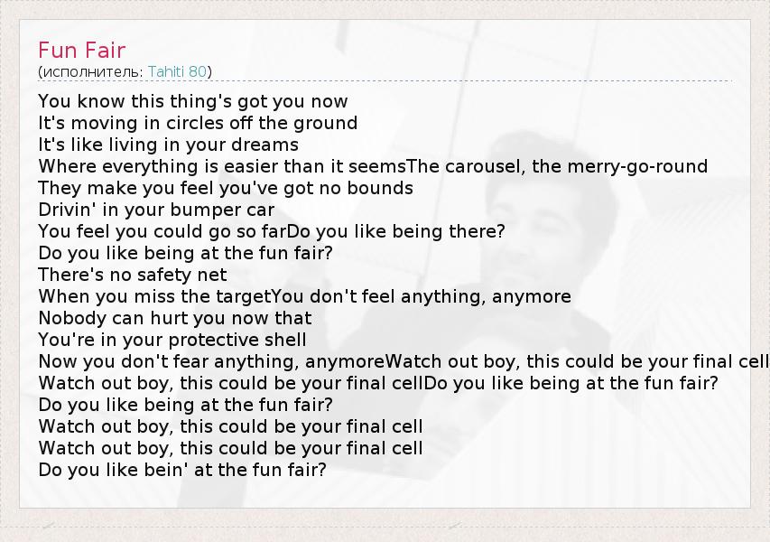 А как ты думаешь, о чем песня "Fun Fair" ?