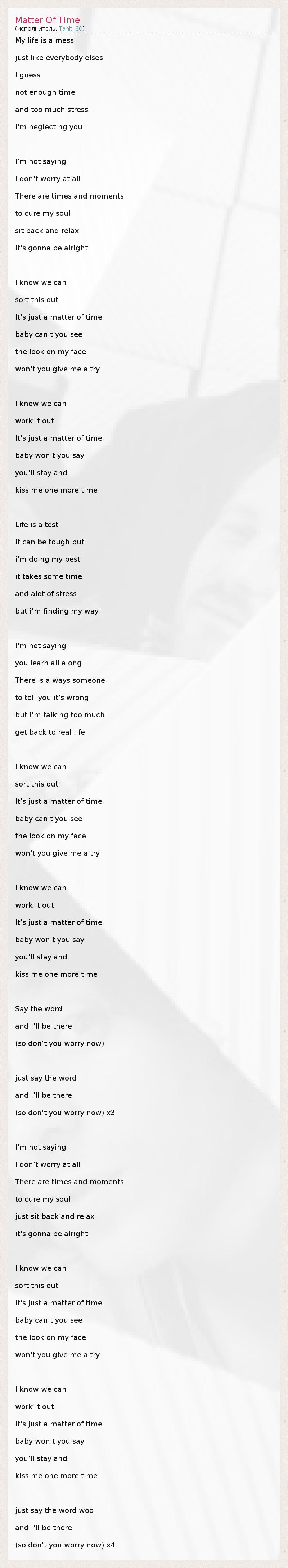 А как ты думаешь, о чем песня "Matter Of Time" ?