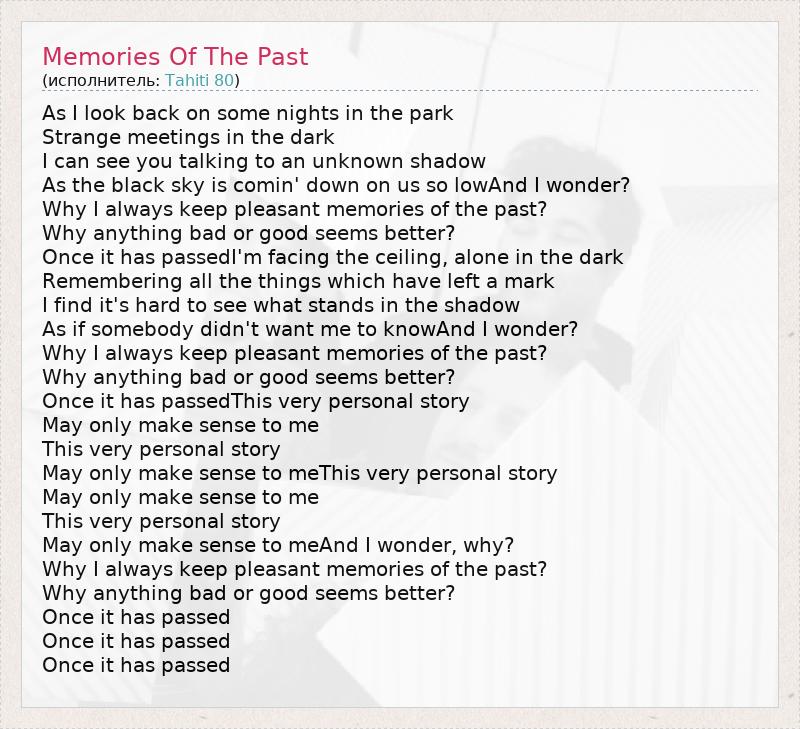 А как ты думаешь, о чем песня "Memories Of The Past" ?