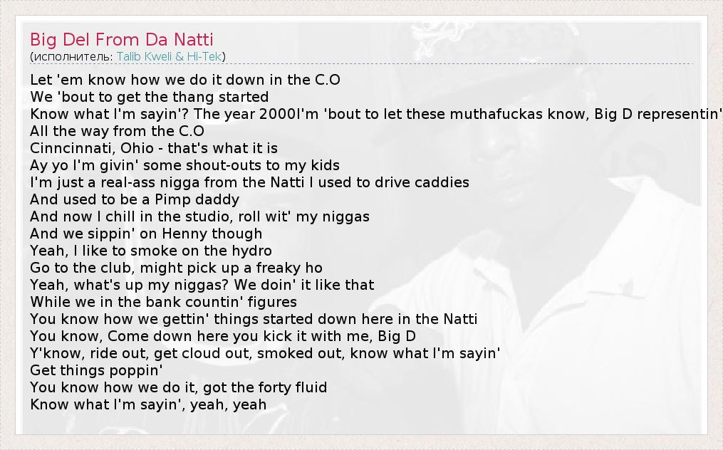 А как ты думаешь, о чем песня "Big Del From Da Natti" ?