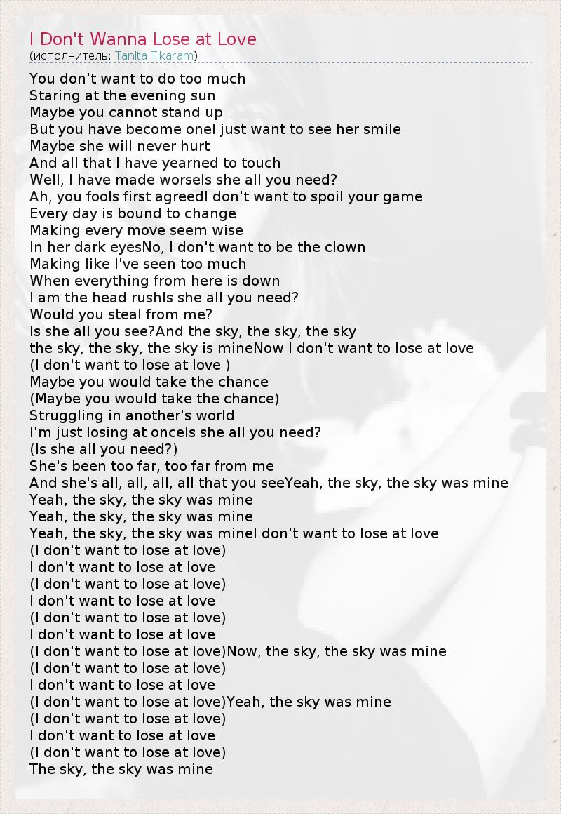 А как ты думаешь, о чем песня "I Don't Wanna Lose at Love" ?