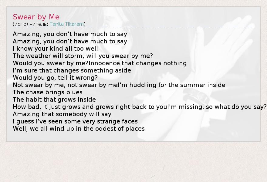 А как ты думаешь, о чем песня "Swear by Me" ?