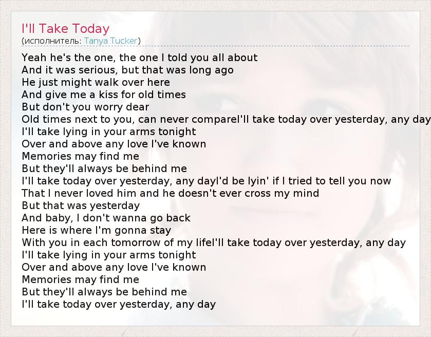 А как ты думаешь, о чем песня "I'll Take Today" ?