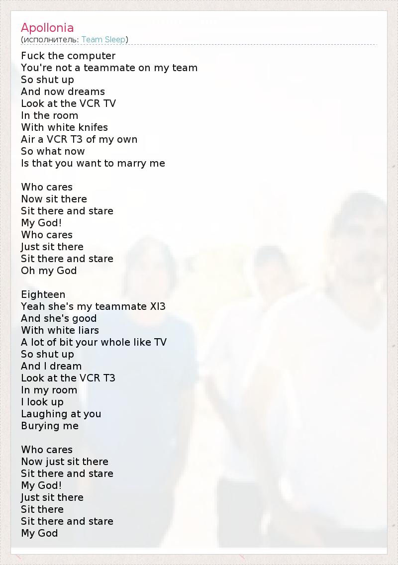 Это интересно:Состав TEAM SLEEP: Чино Морено (вокал, гитара), Тодд Вилкинсон (гитара), DJ Crook (Сэмплы, программирование), Зак Хилл (ударные) и Рик Верлетт (бас).А началось все в 1994 году с одной затеи Морено и его друга Тодда Уилкинсона. За 30 баксов парни купили четырехдорожечный рекордер и поочередно делали на нем записи и обменивались ими. Когда парни уже извели несколько пленок, к их забаве присоединился... продолжение