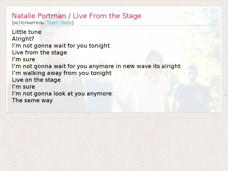 ГлавнаяИсполнителиTeam SleepNatalie Portman / Live From the Stage