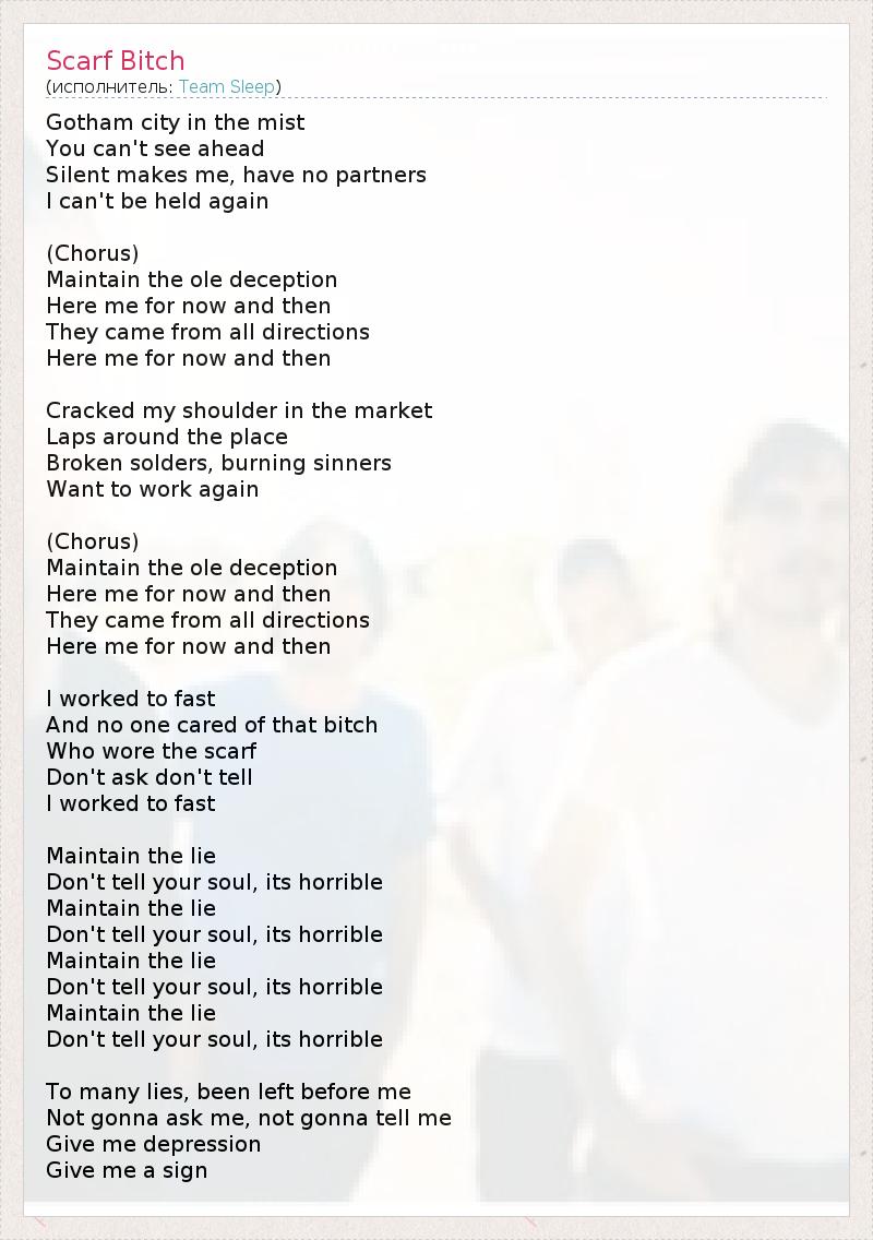 А как ты думаешь, о чем песня "Scarf Bitch" ?