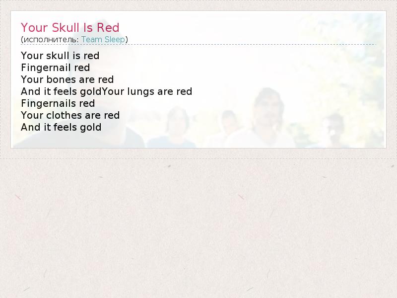 А как ты думаешь, о чем песня "Your Skull Is Red" ?