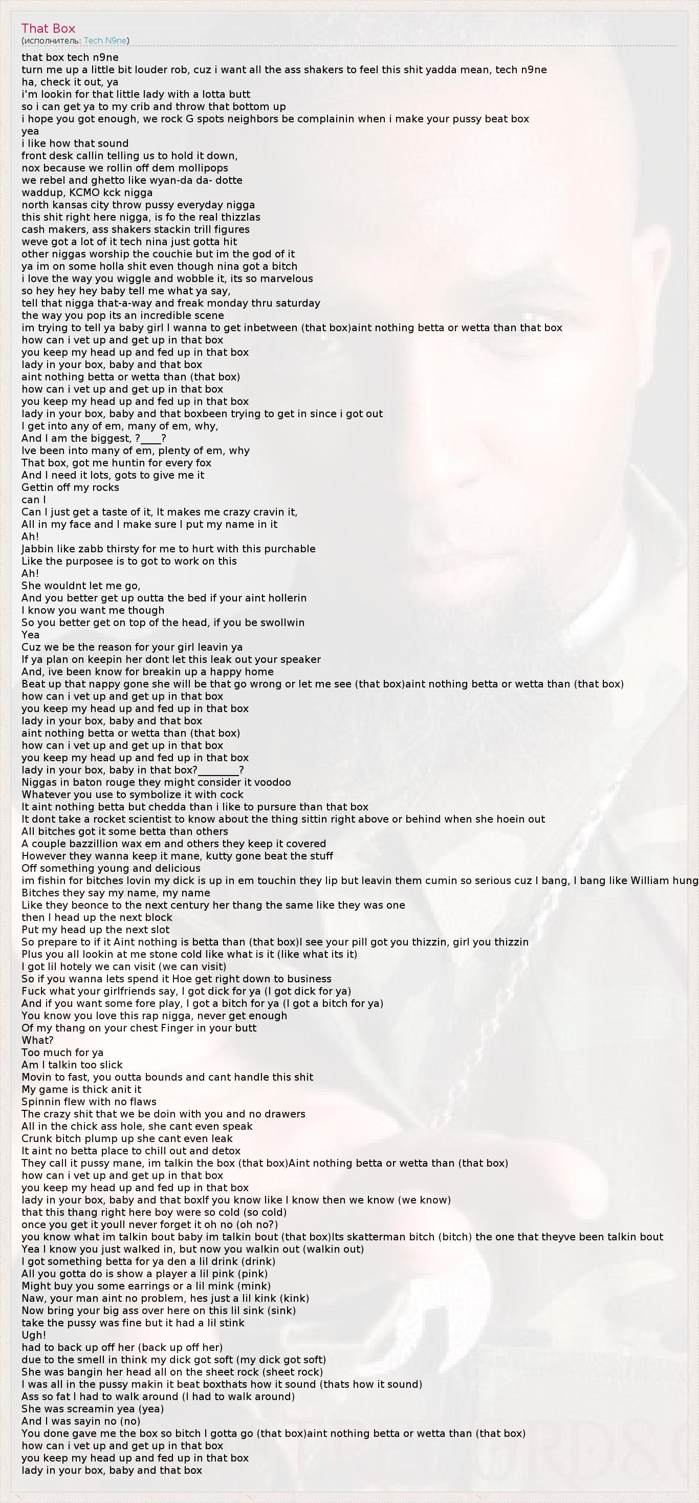 Beat up that nappy gone she will be that go wrong or let me see (that box)aint nothing betta or wetta than (that box)