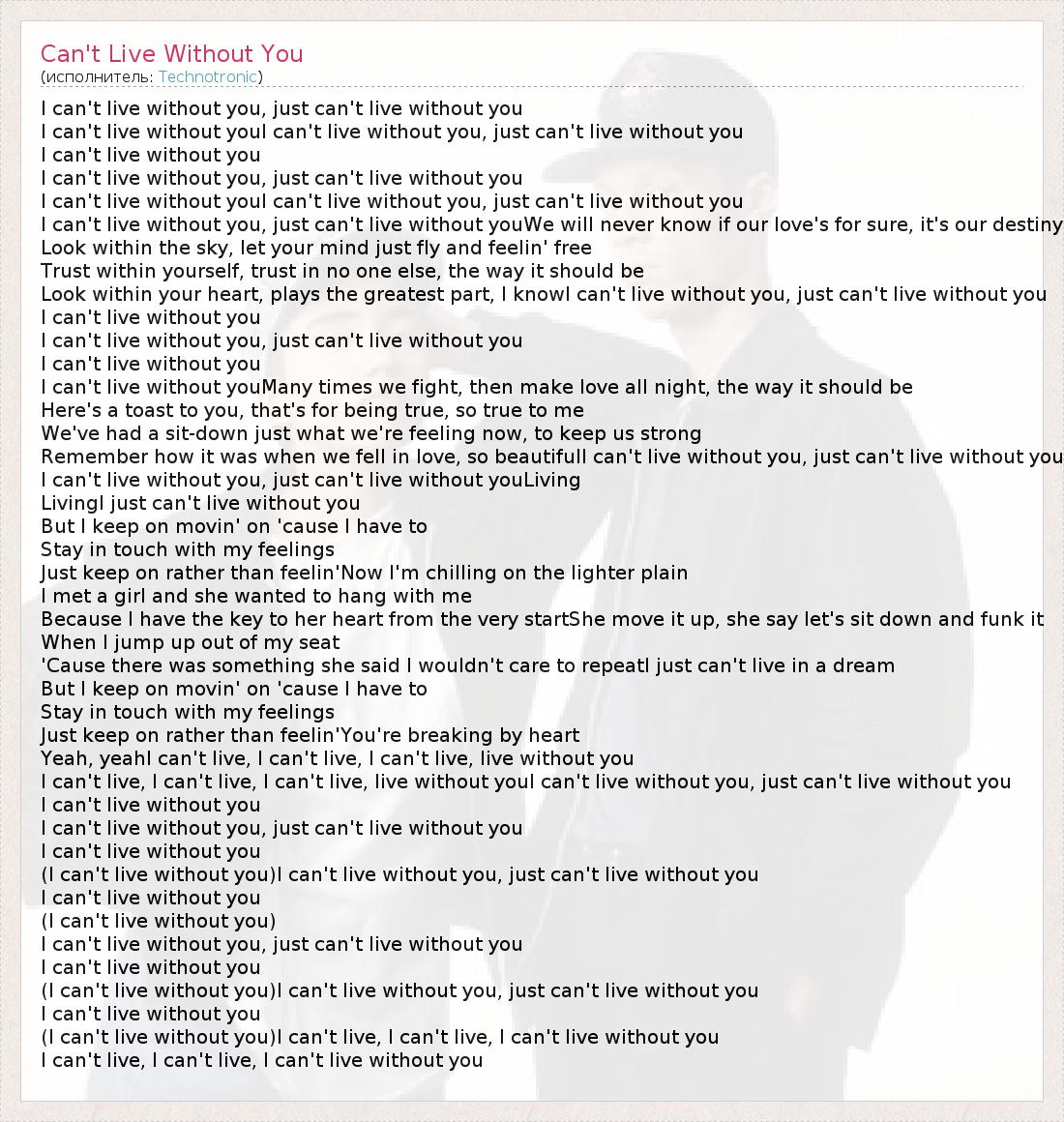 I can't live, I can't live, I can't live, live without youI can't live without you, just can't live without you