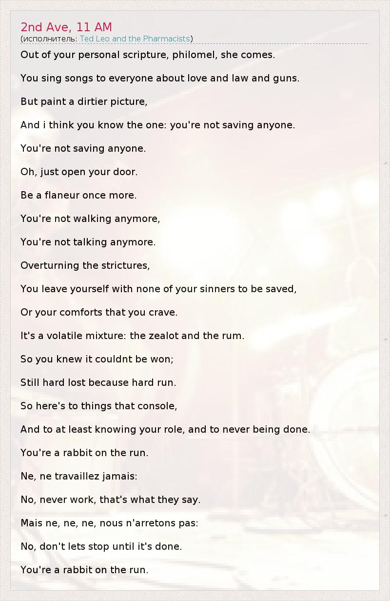 А как ты думаешь, о чем песня "2nd Ave, 11 AM" ?