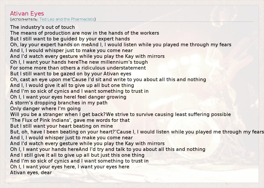 А как ты думаешь, о чем песня "Ativan Eyes" ?