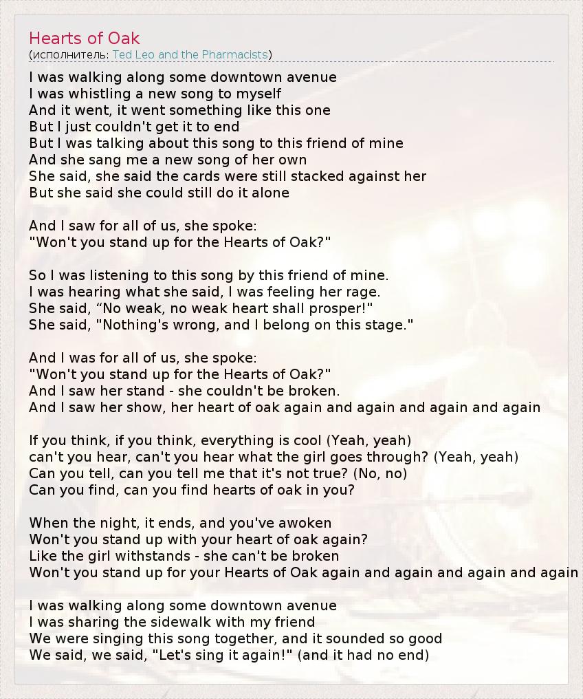 А как ты думаешь, о чем песня "Hearts of Oak" ?