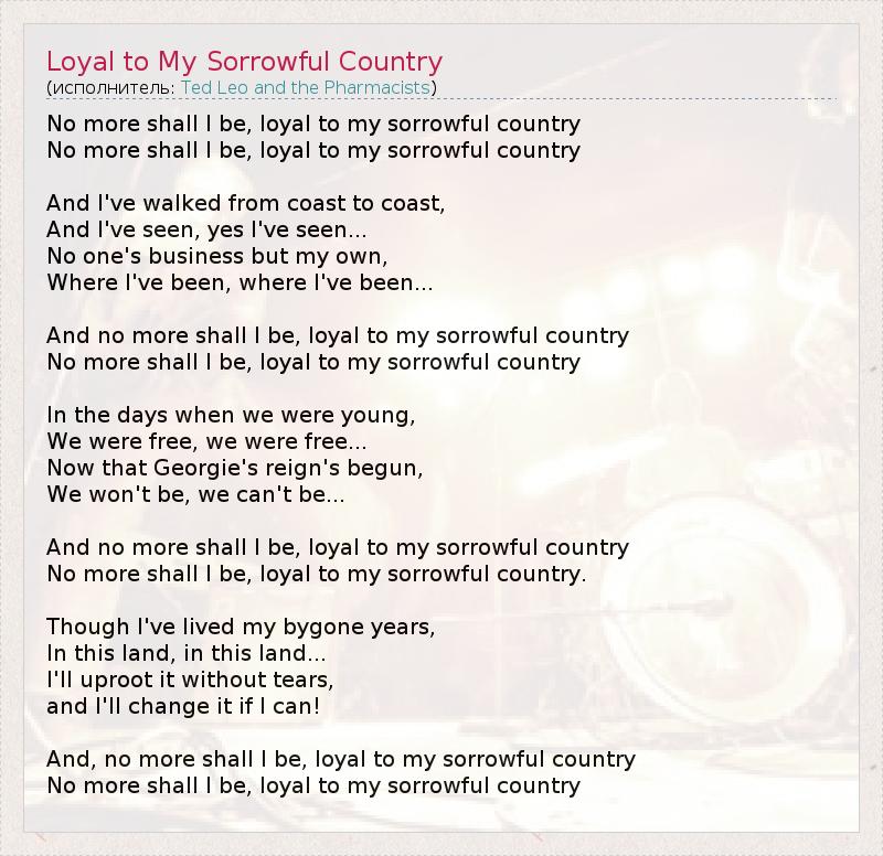А как ты думаешь, о чем песня "Loyal to My Sorrowful Country" ?