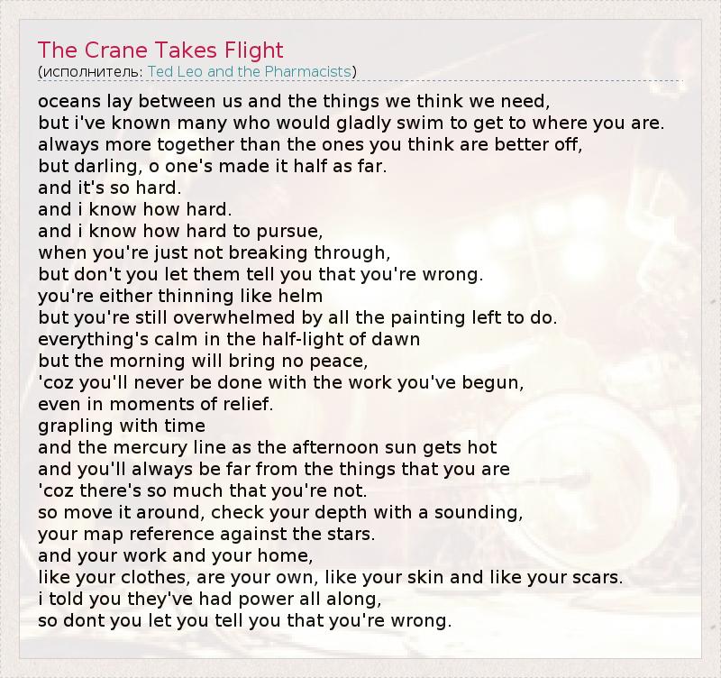 А как ты думаешь, о чем песня "The Crane Takes Flight" ?