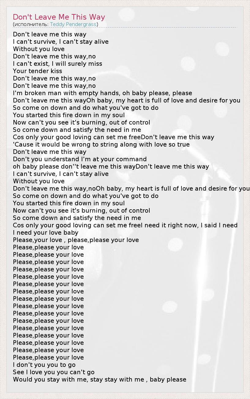 А как ты думаешь, о чем песня "Don't Leave Me This Way" ?