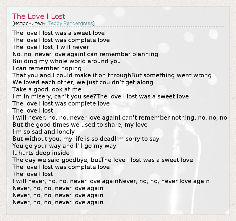 А как ты думаешь, о чем песня "The Love I Lost" ?