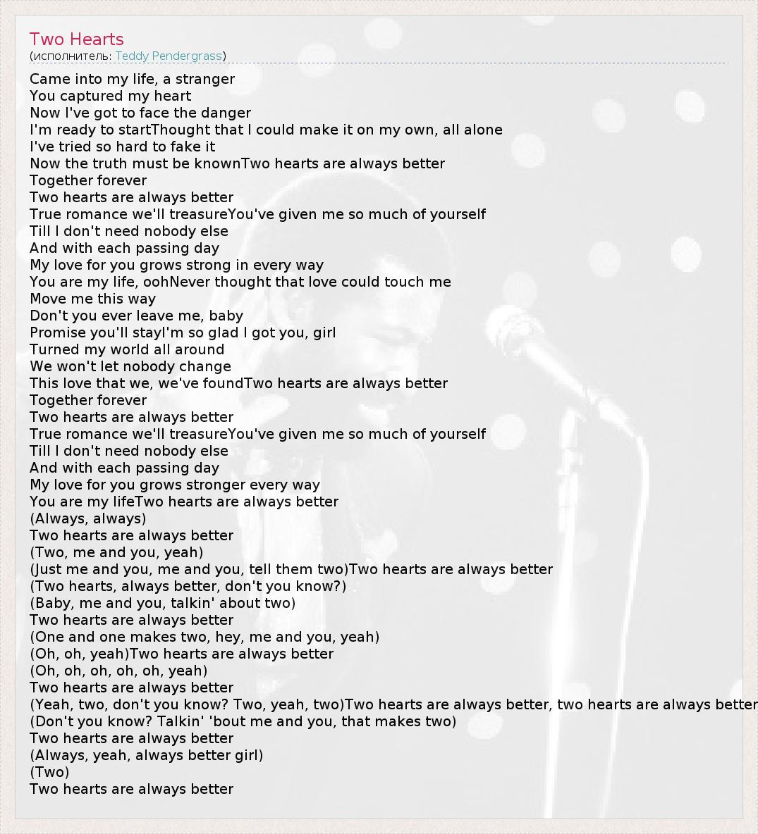 (Yeah, two, don't you know? Two, yeah, two)Two hearts are always better, two hearts are always better