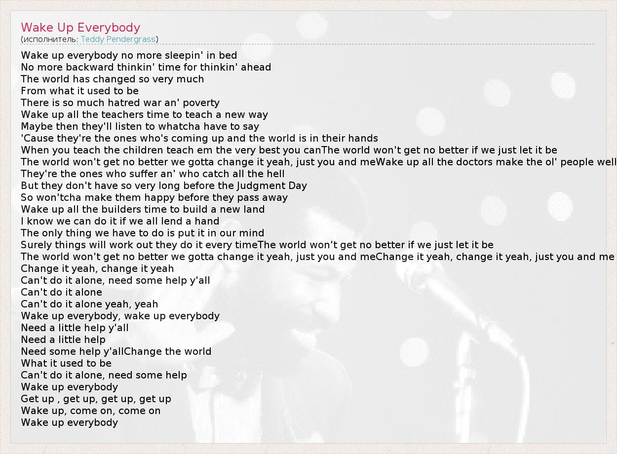 А как ты думаешь, о чем песня "Wake Up Everybody" ?