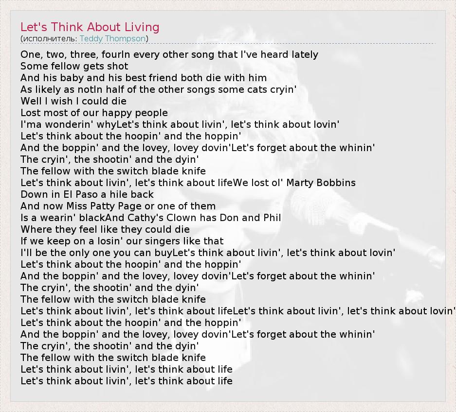 А как ты думаешь, о чем песня "Let's Think About Living" ?