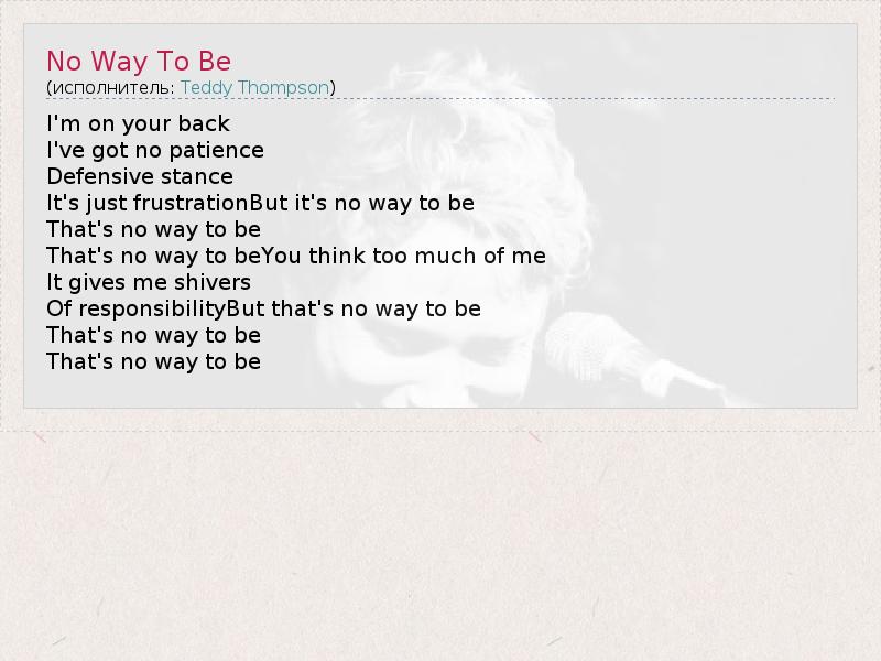 А как ты думаешь, о чем песня "No Way To Be" ?