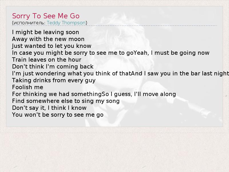 А как ты думаешь, о чем песня "Sorry To See Me Go" ?