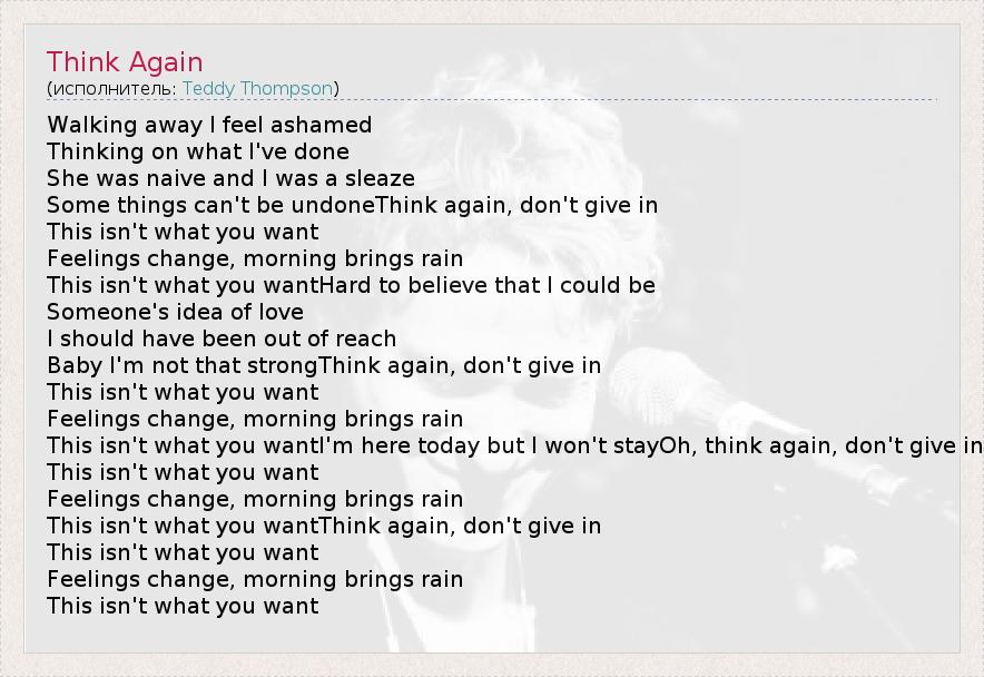 Это интересно:Тедди Томпсон родился в Лондоне в 1976 году, так же он сынЛинды Томпсон и Ричарда Томпсон (Richard & Linda Thompson) его сестра - певица Камила Томпсон.Стиль Тедди очень сложно отнести к какой-либо категории, потому что его музыка находится под различными влияниями. Выросший в окружении Фолк-музыки, он слушал музыкальную гамму таких исполнителей как Hank Williams, Jimi Hendrix, Sam Cooke и госпель(стиль афро-американской... продолжение