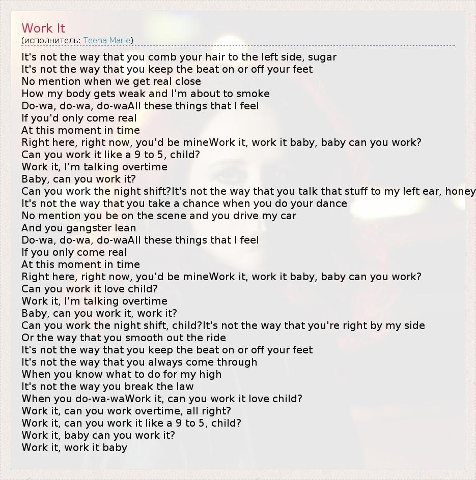 Right here, right now, you'd be mineWork it, work it baby, baby can you work?