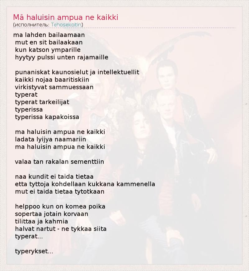 ГлавнаяИсполнителиTehosekoitinMä haluisin ampua ne kaikki